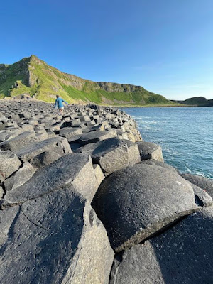The travel guide suggested that we arrive at Giant's Causeway before 11 or after 4:00. We knew with the drive that we'd have to aim for after 4:00 and I'm glad we did. The visitor center was closed when we arrived (about 5:00) and we were able to park pretty close. There were some other people around, but not hoards. The sun was not as hot and the lighting and shadows were amazing.